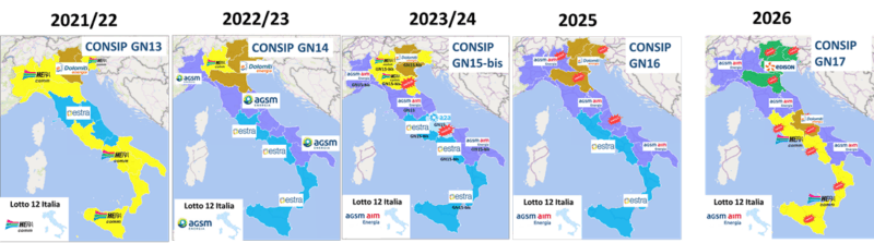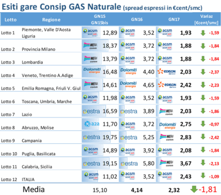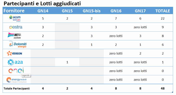 I lotti aggiudicati ad Edison sono stati sottratti a Dolomiti energia, che si consola con l’aggiudicazione del Lotto 8 Abruzzo e Molise.