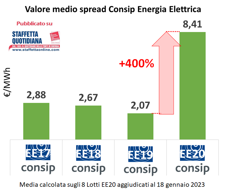 La gara Consip EE20 è la prima gara indetta dopo lo scoppio della crisi energetica, e c’era molta attesa riguardo al livello degli spread che i coraggiosi partecipanti avrebbero offerto.