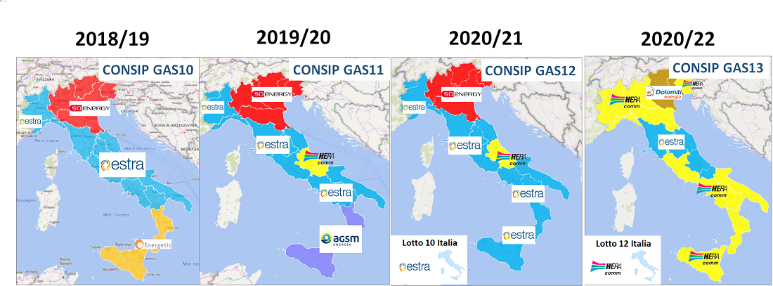 Visto l’esito della GAS13, Hera Comm è destinato a coprire gli spazi lasciati da Soenergy. Sarà interessante scoprire nei prossimi mesi se Hera Comm in Emilia Romagna e Friuli, e Dolomiti Energia in Veneto e Trentino, sapranno generare gli stessi numeri di Soenergy in termini di quantità di gas venduto alla PA.