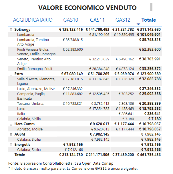 Visto l’esito della GAS13, Hera Comm è destinato a coprire gli spazi lasciati da Soenergy. Sarà interessante scoprire nei prossimi mesi se Hera Comm in Emilia Romagna e Friuli, e Dolomiti Energia in Veneto e Trentino, sapranno generare gli stessi numeri di Soenergy in termini di quantità di gas venduto alla PA.